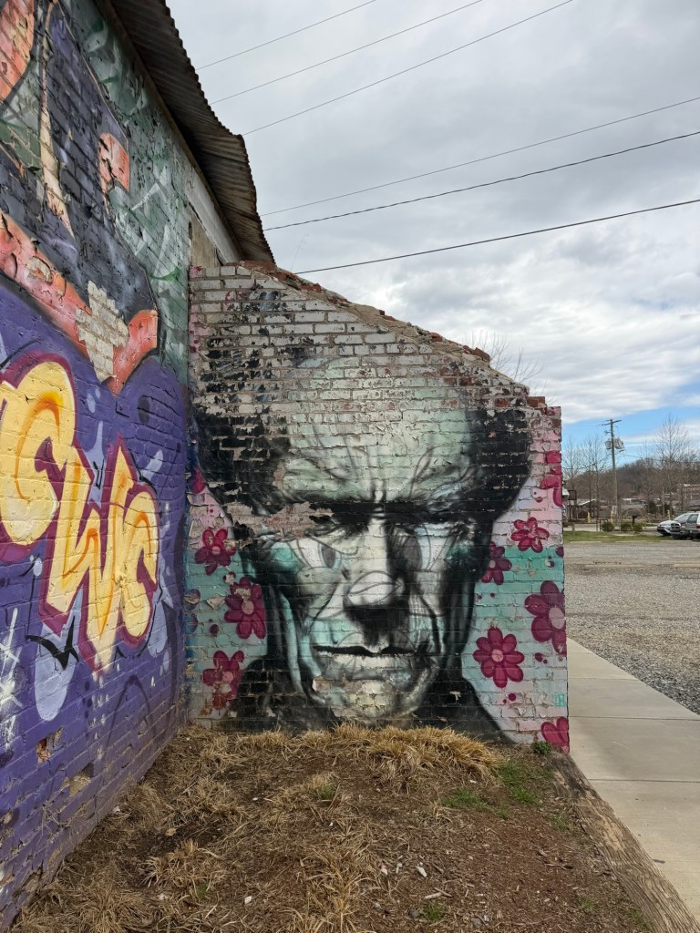 Once we checked out of our hotel, we just had two more things to do in Asheville: street art and one final meal. Lauren got to experience my travel style: Photographing street-art…